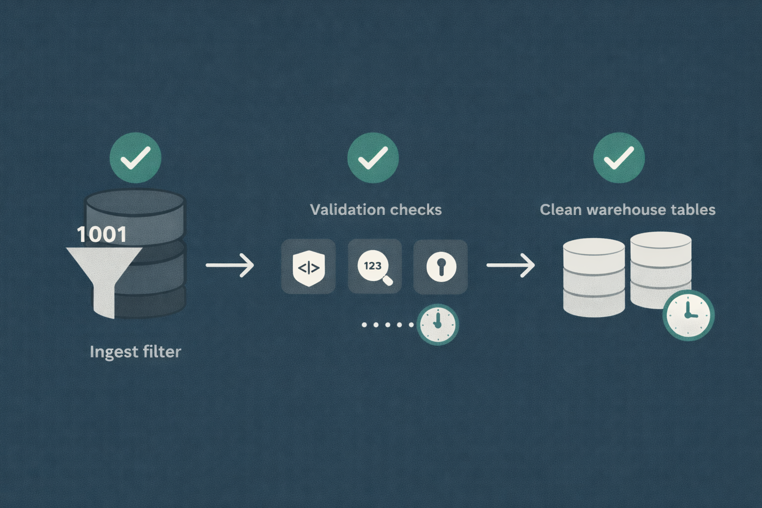 Reject or quarantine bad records with a reason code.